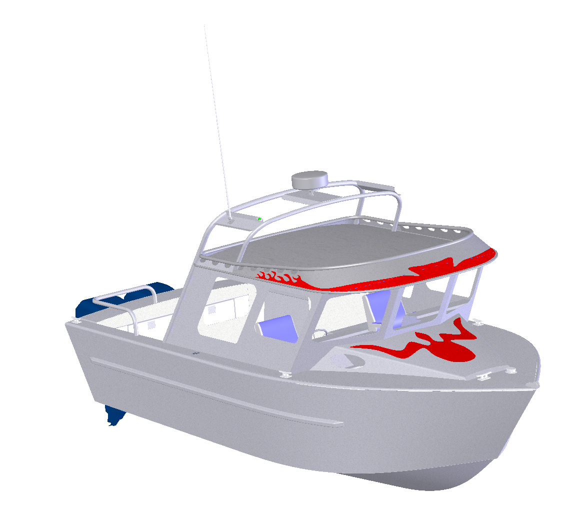 29'2"X13'11" Packer style boat with double fwd ramp,