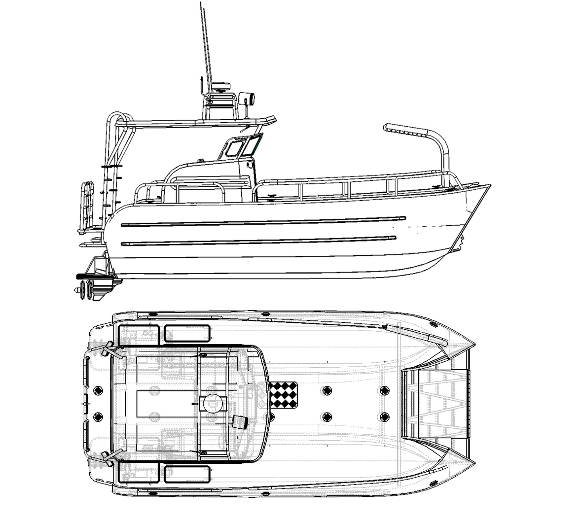 cuddy cabin, with head & shower, designed for twin I/O Diesel.
